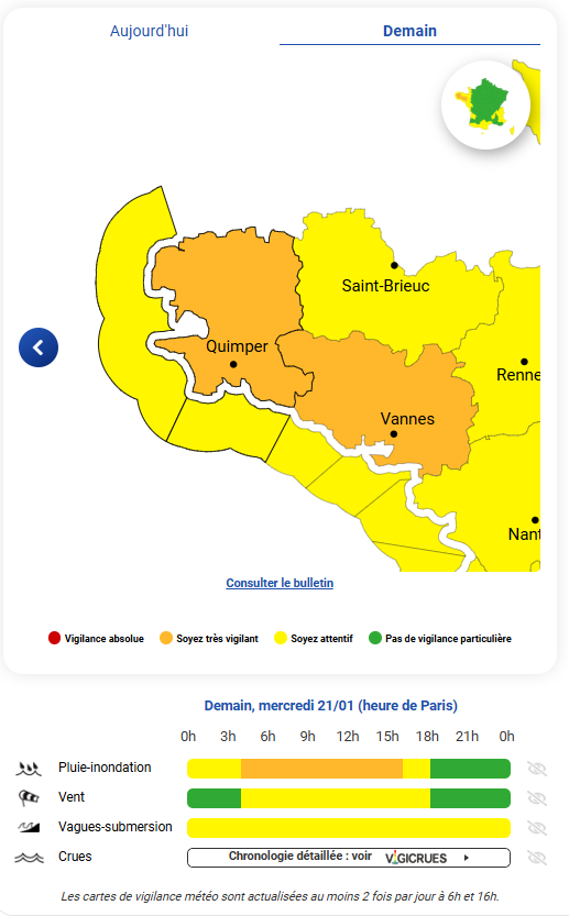 👉 Pour la nuit et demain mercredi 21 janvier 2026