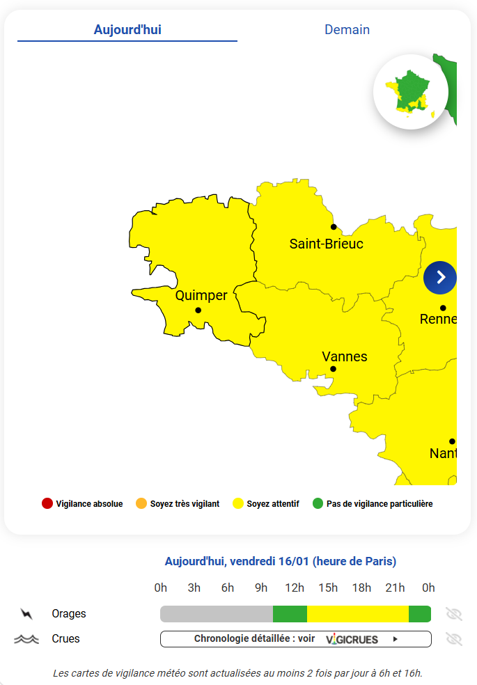 👉Maintien de la vigilance jaune sur les autres bassins