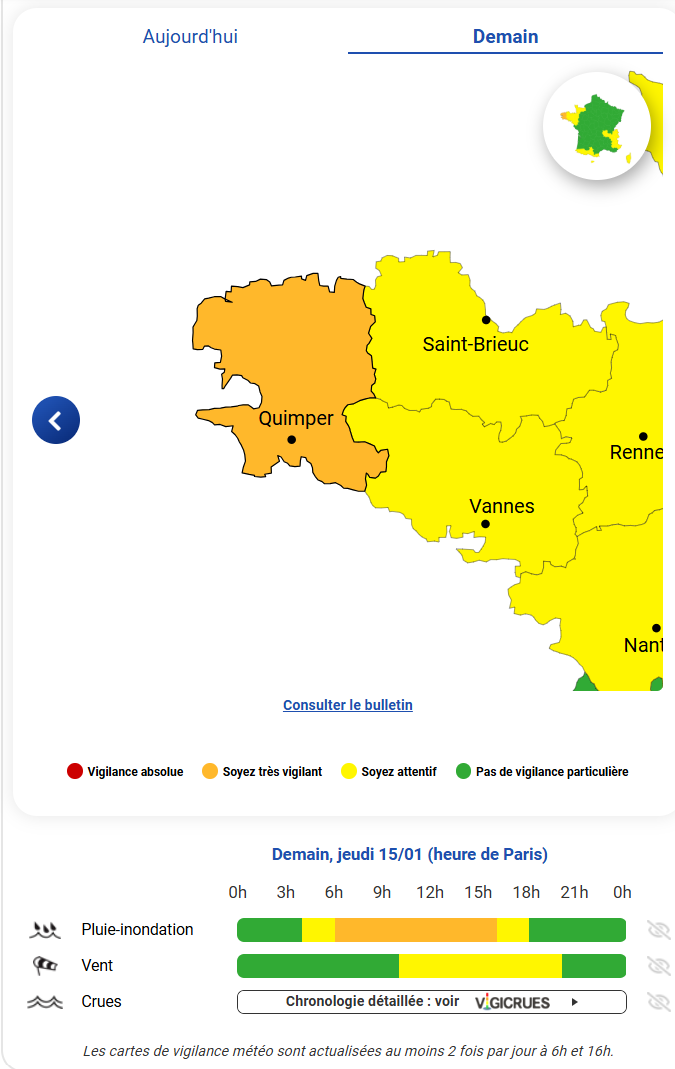 Bulletin Météo pour le Jeudi 15 janvier 2026