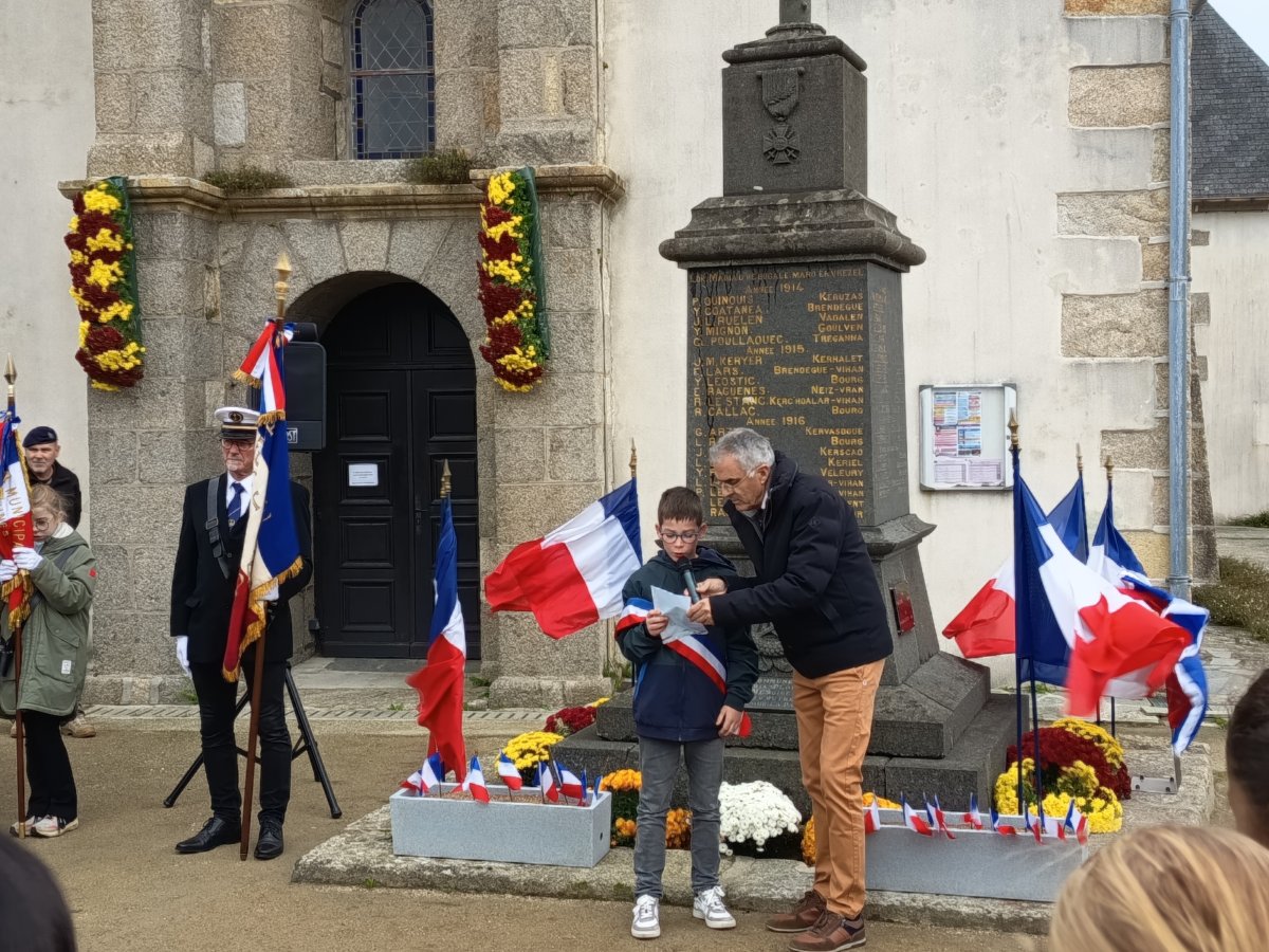Le 11 novembre, à Locmaria-Plouzané, les jeunes conseillers étaient nombreux à rendre hommage à ces hommes dont le nom figure sur notre monument aux Morts.