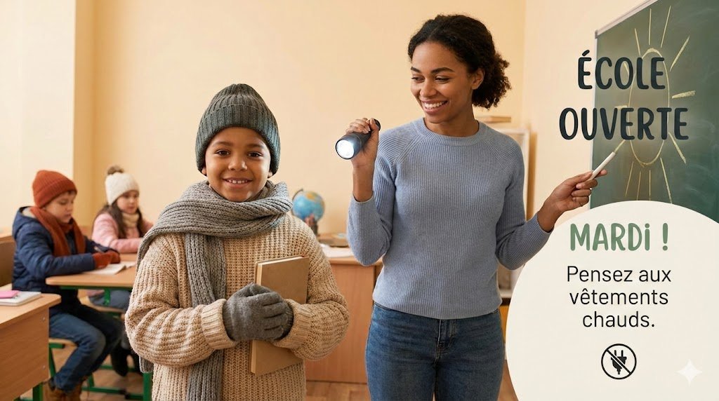 De même, le menu de la cantine sera ajusté pour tenir compte de l’absence d’électricité (repas préparés avant 9h et maintenus en température, ou repas froids).