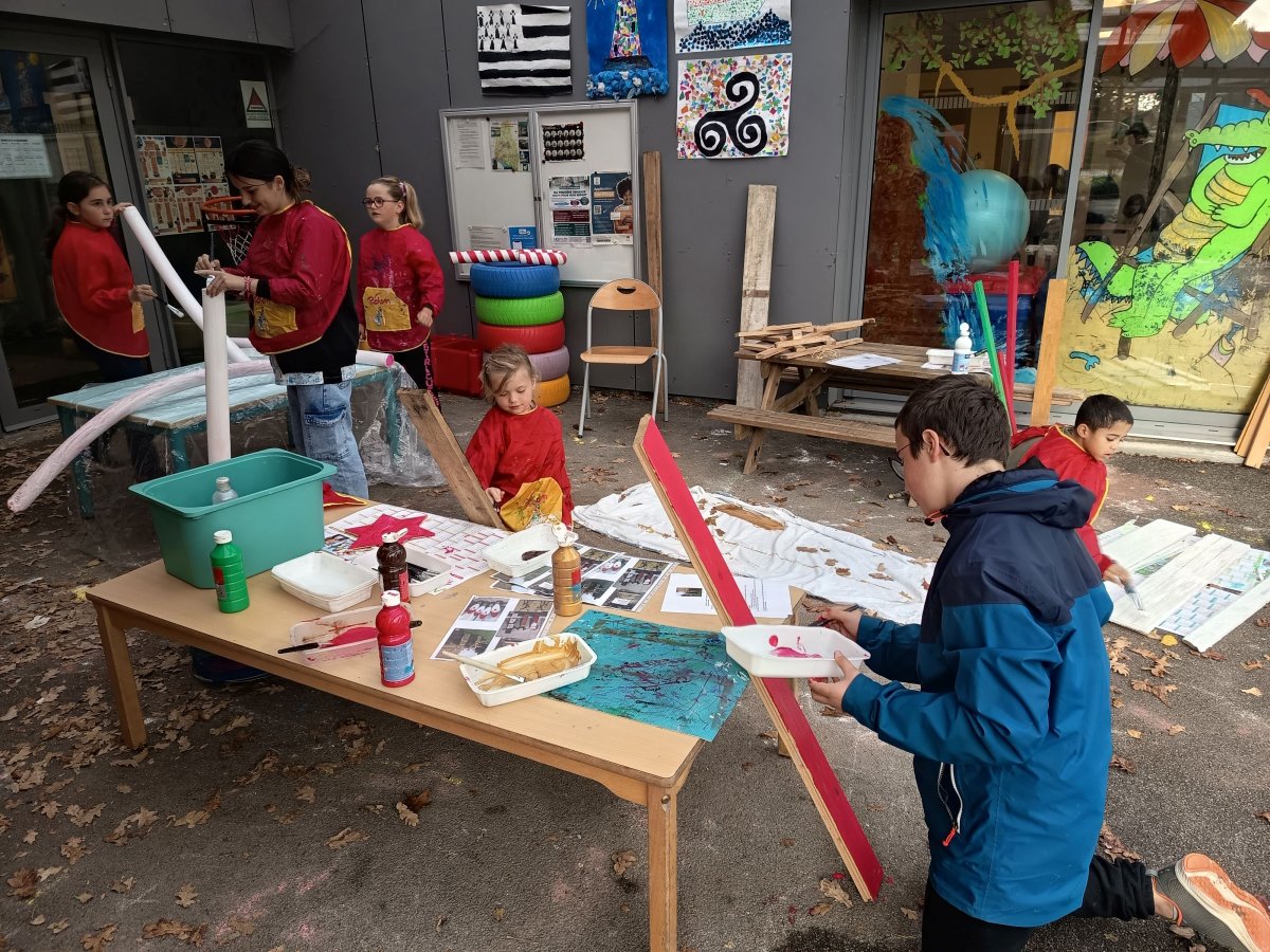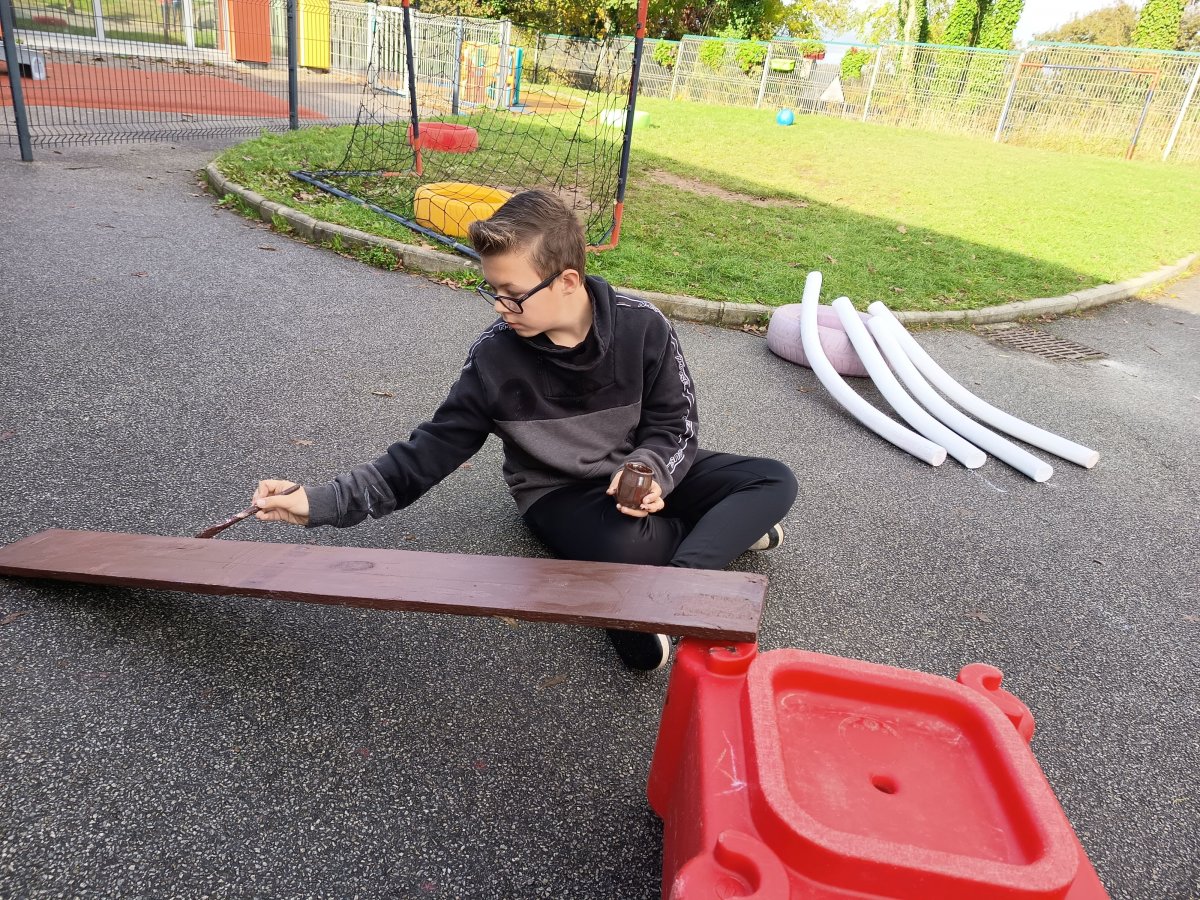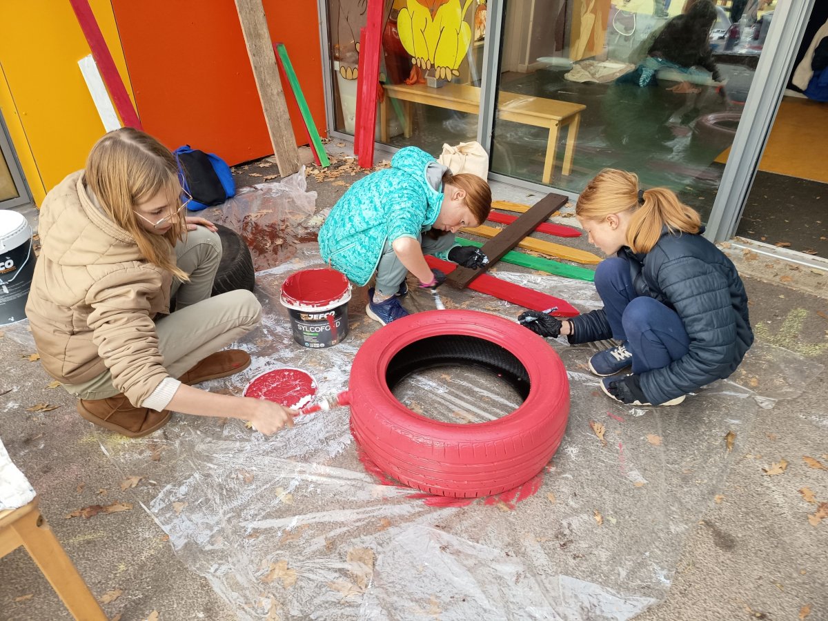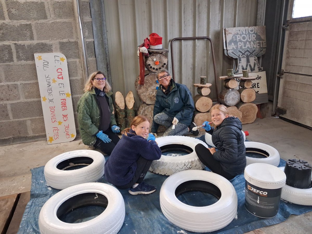 Durant les vacances scolaires, les enfants du CMJ (Conseil Municipal Jeune) et de l’ALSH (centre aéré) se sont retrouvés dans les locaux de l’ALSH et des services techniques pour des ateliers « peinture décoration de Noël ». Armés de gants, de protections, les enfants ont entrepris de peindre des pneus, des frites de piscine, du bois à partir de matériaux de récupération.