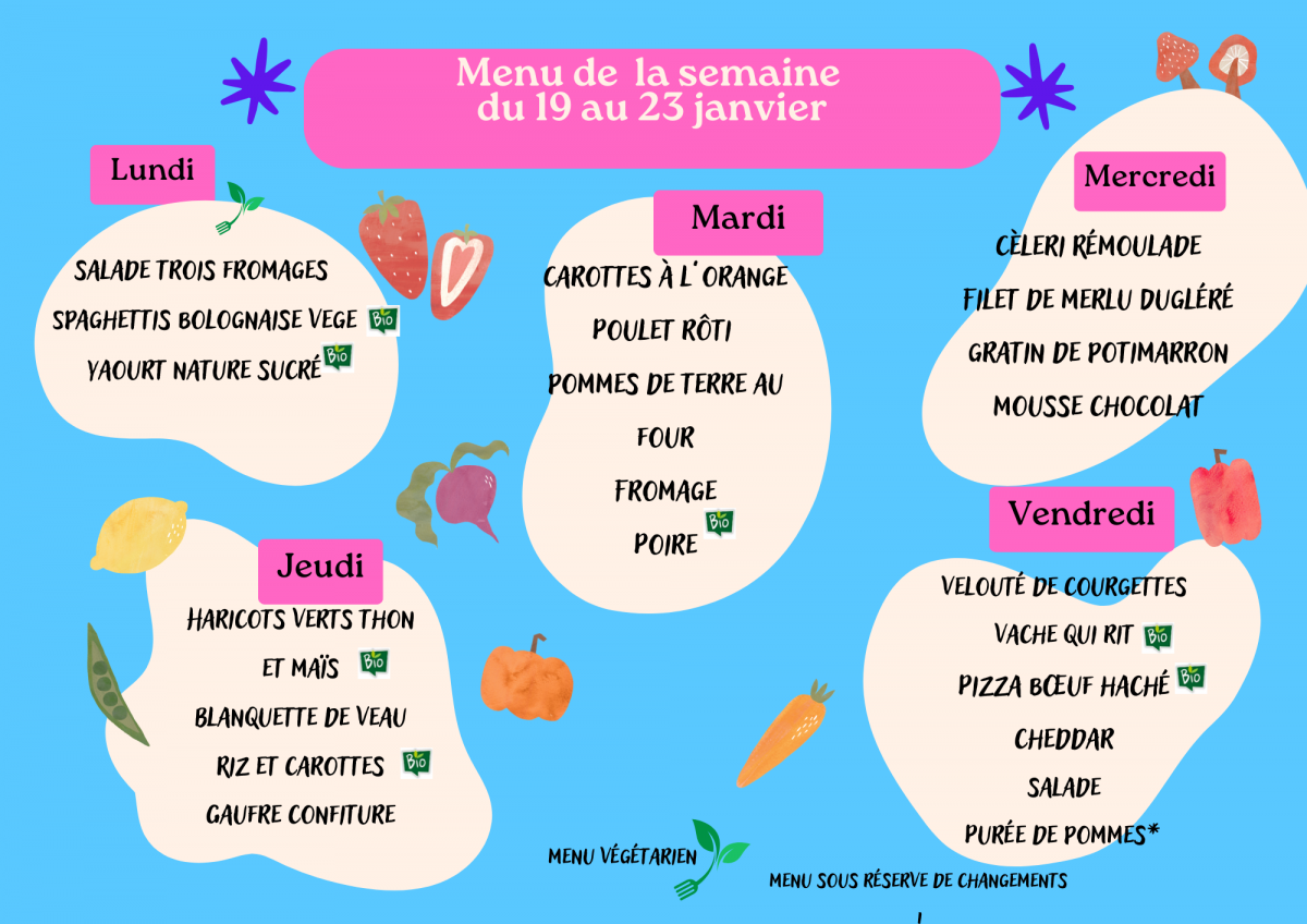 Menus des écoles semaine du 19 au 23