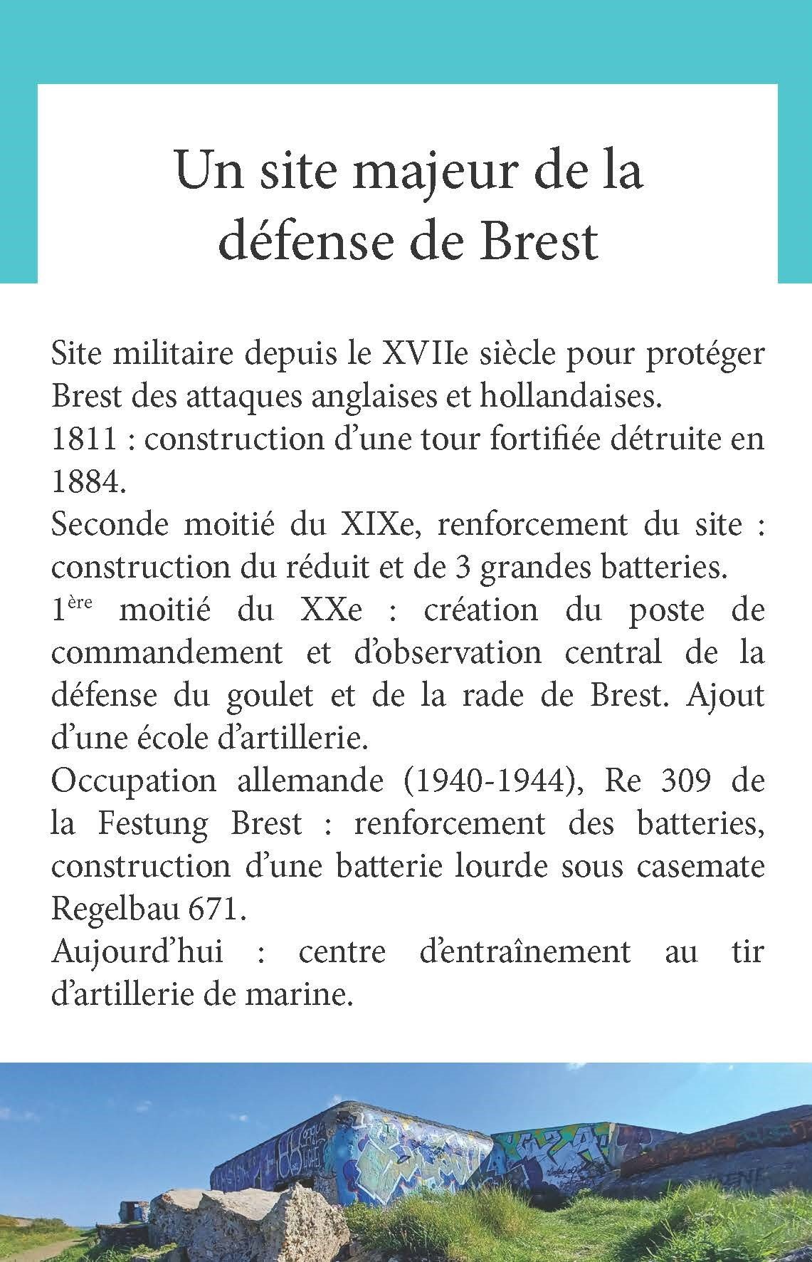 Ce samedi, RDV à 14h et à 16h au fort de Toulbroc’h pour 2 visites commentées. Un fléchage est mis en place dès la route du Conquet et des parkings sont prévus proches du site.