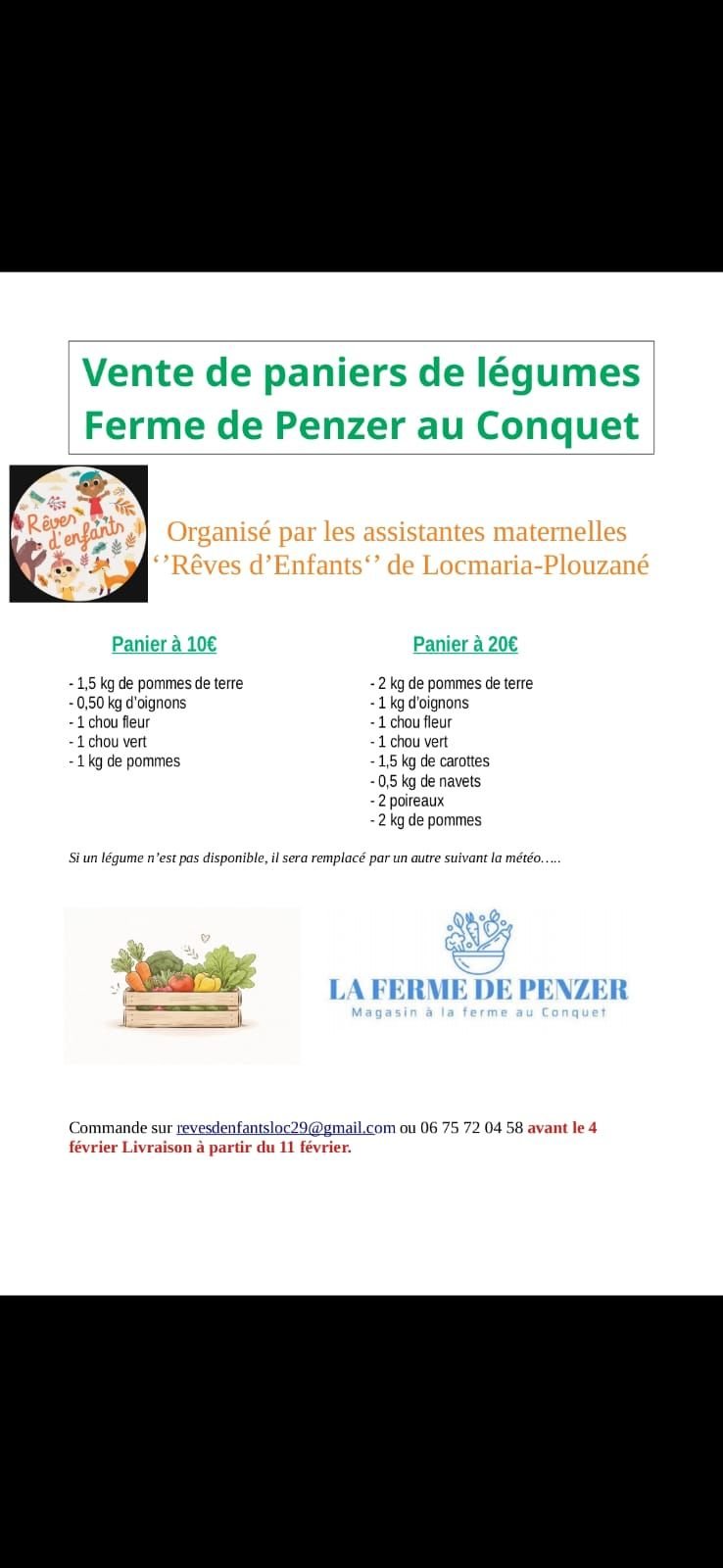 Nous organisons une vente de légumes en partenariat avec LA FERME DE PENZER AU CONQUET !